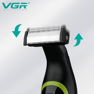 The VGR V-017 body and beard trimmer for men features skin-friendly stainless steel blades designed for safe and smooth grooming. Equipped with a double-sided trimming head, it offers precision and versatility for various grooming needs.