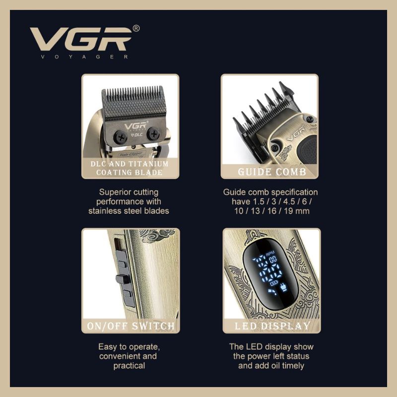 احصل على أداء احترافي وجودة صالون في منزلك مع ماكينة VGR V-027 المصممة بقوة ومتانة عالية لتمنحك دقة وتشذيب مثالي في كل مرة.