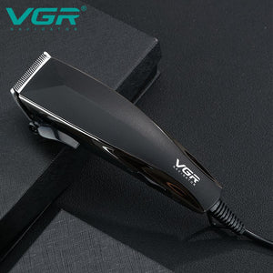 VGR V-033 Men's Hair Clipper – Operates on direct AC power, featuring sharp stainless steel blades and 4 guide combs (3–6–9–12 mm) for precise and graduated cutting.