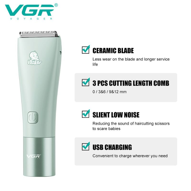ماكينة قص الشعر للأطفال VGR V-153 مصممة خصيصًا لتمنح طفلك تجربة قص مريحة وآمنة.