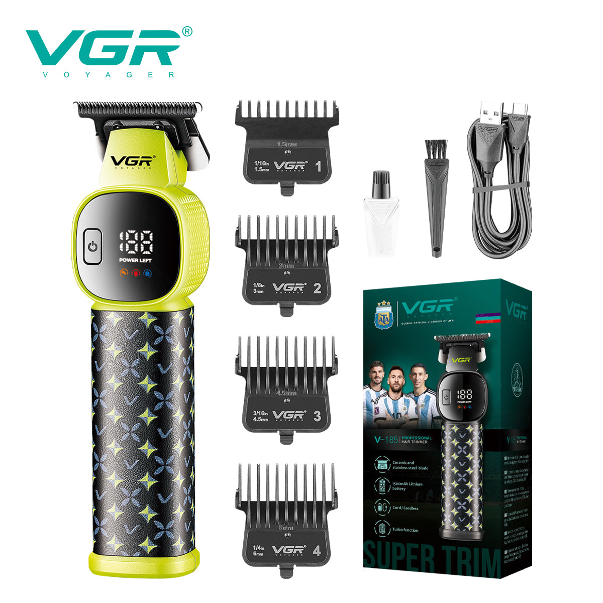The VGR V-185 professional hair trimmer features a ceramic and stainless-steel blade, USB charging, and a 1500mAh battery delivering up to 220 minutes of corded or cordless use.