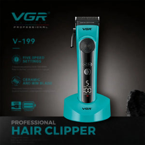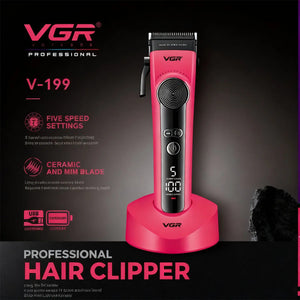 The VGR V-199 Professional Hair Clipper is engineered for precision and efficiency, featuring a high-performance motor with five adjustable speed levels ranging from 5500 to 7500 RPM. This allows you to customize cutting power based on hair type and thickness for optimal results.