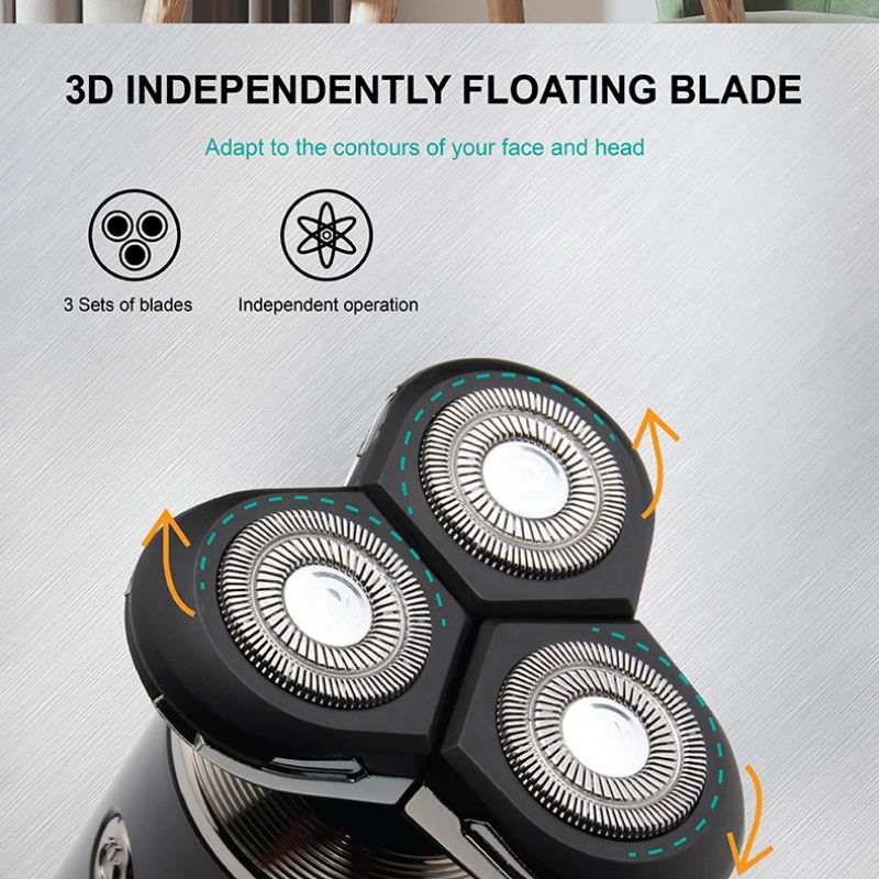 تأتي مزودة بـ ثلاثة رؤوس حلاقة دوّارة تتبع منحنيات الوجه بدقة لتمنحك حلاقة متساوية ومريحة دون تهيج البشرة.