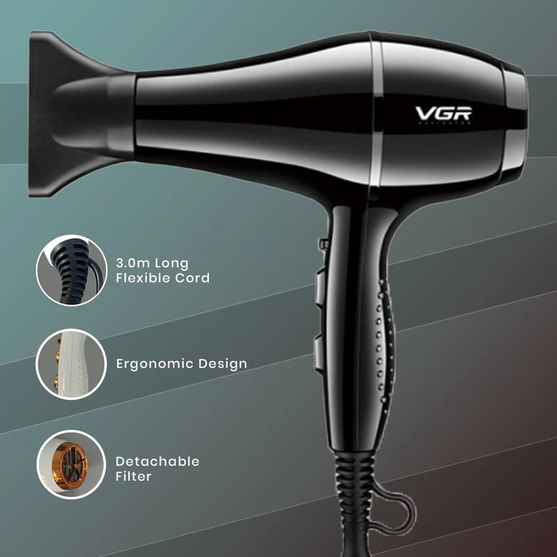 The VGR V-414 Hair Dryer combines style, performance, and precision for professional-level results at home or in the salon.