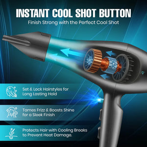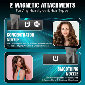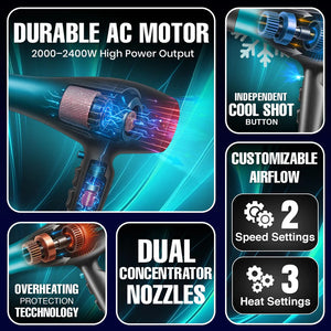 Equipped with a high-performance AC motor delivering 2000–2400W, it ensures powerful airflow for quick drying and smooth, frizz-free results.