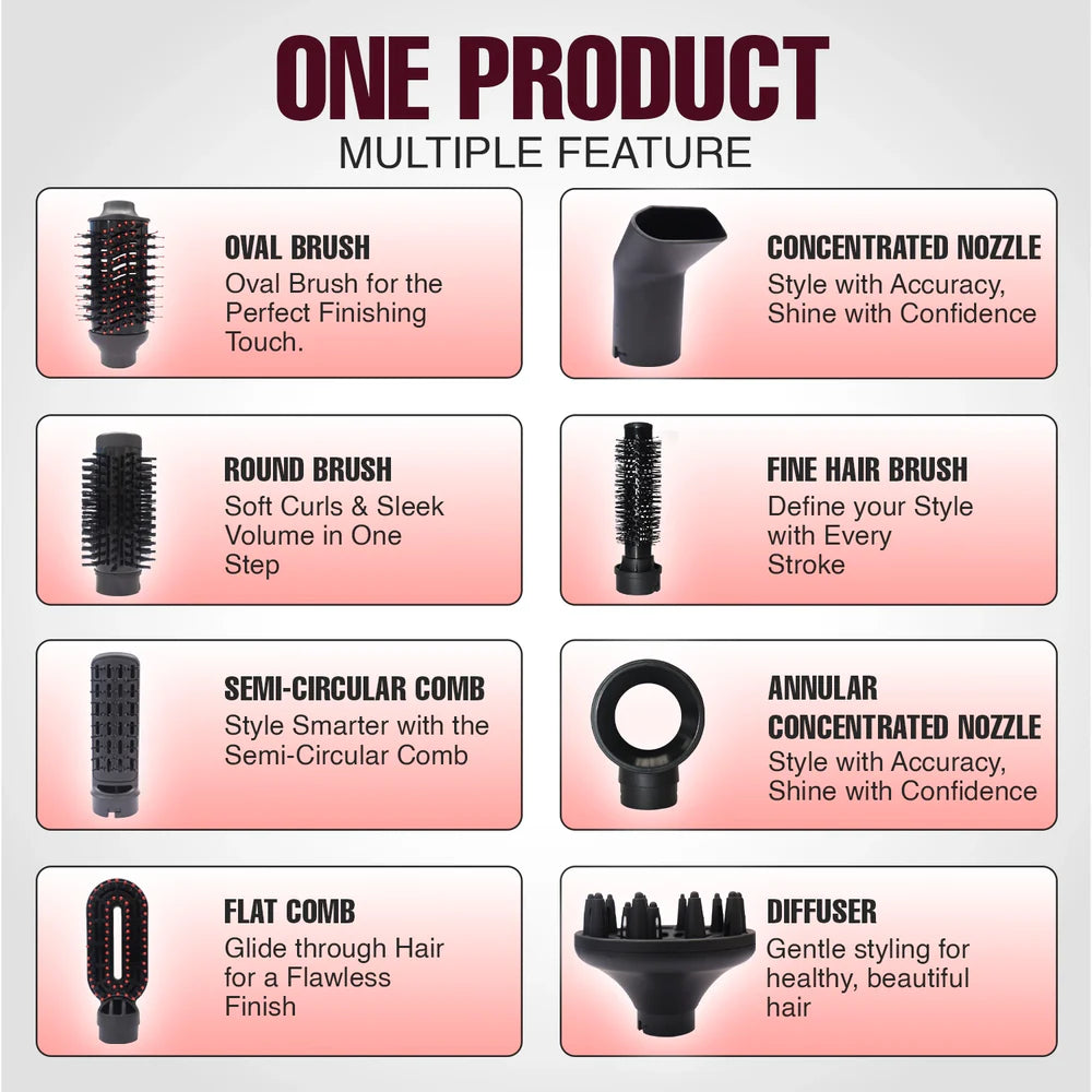 🔺 Attachments: 8 interchangeable styling heads