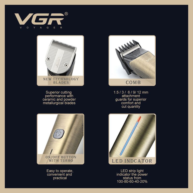 Achieve precise and powerful performance with the VGR V-669 Professional Hair Clipper, featuring ceramic and powder metallurgical blades for smooth, long-lasting cutting results.
