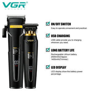 VGR V-694S2 Professional Hair Clipper & Trimmer Set | Dual LED Display | Lithium Power