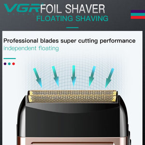 تتكون ماكينة حلاقة اللحية VGR V-331 للرجال من رأس حلاقة رقائق معدنية ومفتاح تشغيل/إيقاف متطور وكابل شحن USB وفرشاة تنظيف وحقيبة تخزين ورأس حلاقة بديل. ماكينة حلاقة اللحية VGR V-331 سهلة الحمل تمامًا ويمكن شحنها في أي مكان باستخدام كابل USB. وهي مقاومة للماء تمامًا وتتماشى مع معيار الصناعة IPX4. بينما تبلغ مدة الشحن الكاملة حوالي 8 ساعات، يمكن لهذه الآلة العمل بشكل مستمر لمدة 50 دقيقة دون الحاجة إلى مزيد من الشحن. تعمل الآلة بمصدر طاقة 5V-1A. تستخدم هذه الآلة بطارية قابلة لإعادة الشحن مدمجة داخل الجهاز. يتميز سطح المنتج بتصميم مانع للانزلاق، كما يستخدم الجهاز رقائق مزدوجة مضادة للحساسية، مما يوفر قصًا مثاليًا.