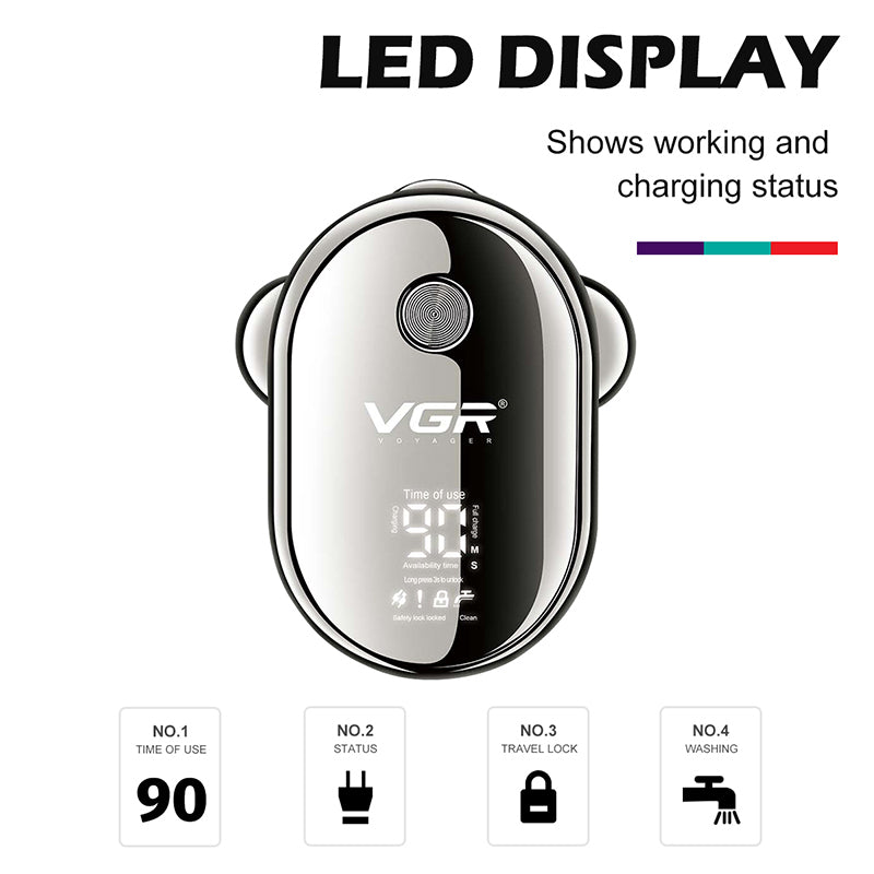 احصل على حلاقة ناعمة وسريعة مع ماكينة الحلاقة الدوّارة VGR V-395 المقاومة للماء بمعيار IPX6، والمصممة لأداء موثوق وسهل الاستخدام.