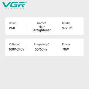 احصلي على شعر أملس ولامع بسهولة مع مكواة الشعر VGR V-519S المصممة خصيصًا للاستخدام الاحترافي.