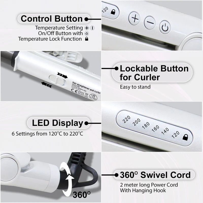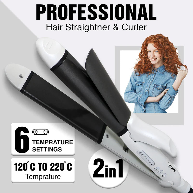 مكواة ومجعد شعر أحترافية 2 في 1 للنساء VGR V-558