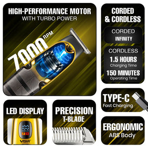 ماكينة تشذيب شعر ولحية للرجال بشفرة من الفولاذ وخاصية تربو VGR V-981