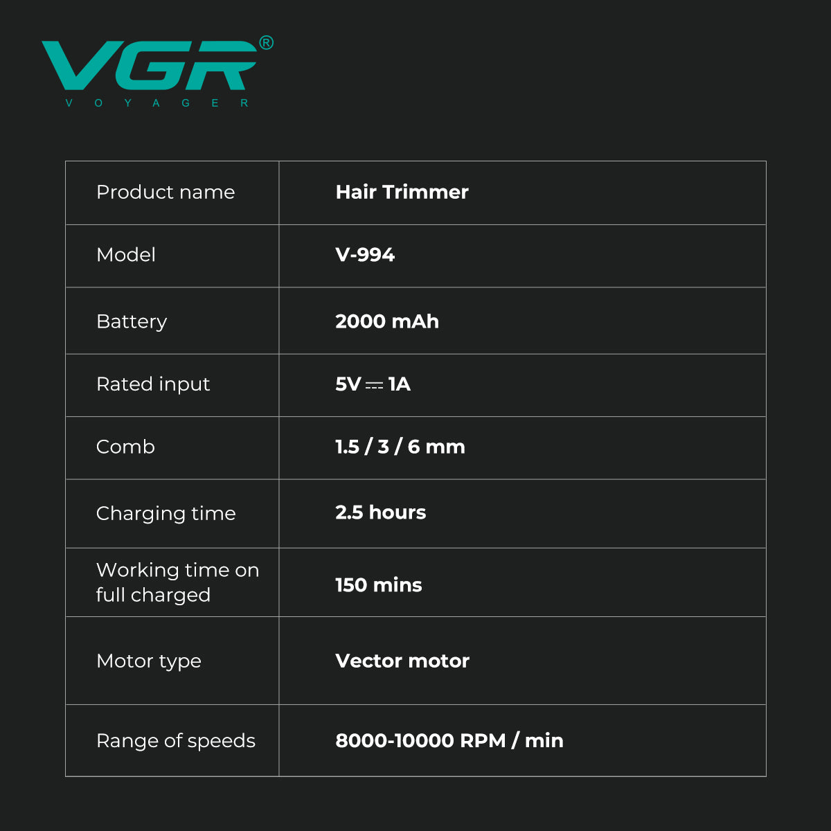 تأتي ماكينة VGR V-994 Professional Hair Trimmer لتجمع بين القوة الفائقة والدقة العالية في تصميم معدني أنيق.