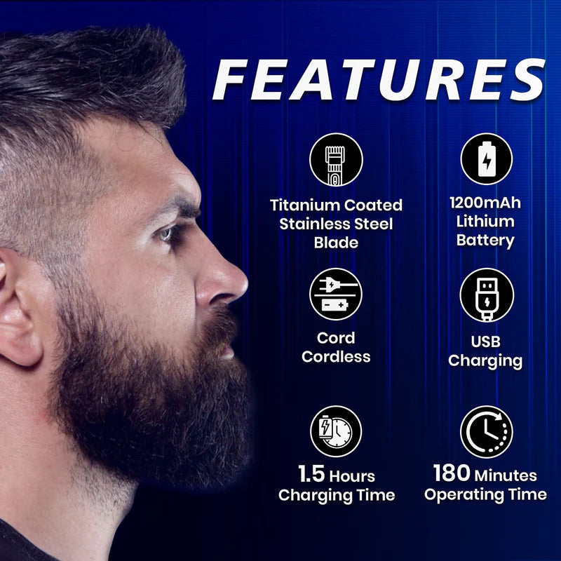 تأتي الماكينة بشفرات من الستانلس ستيل مطلية بالتيتانيوم لضمان أداء قوي وحلاقة مريحة بدون سحب أو تهيج.